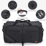 [ Thoughtful Design ] : The side shoe compartment has two exclusive ventilated air vents and can also be used as a dirty laundry compartment, water & odor resistant. 1 zipper pocket as sleeve on the back of the duffle is designed to keep the bag secure when put over the telescoping handle of a suitcase. The grip and shoulder straps are all padded to reduce the burden on the hands or shoulders.