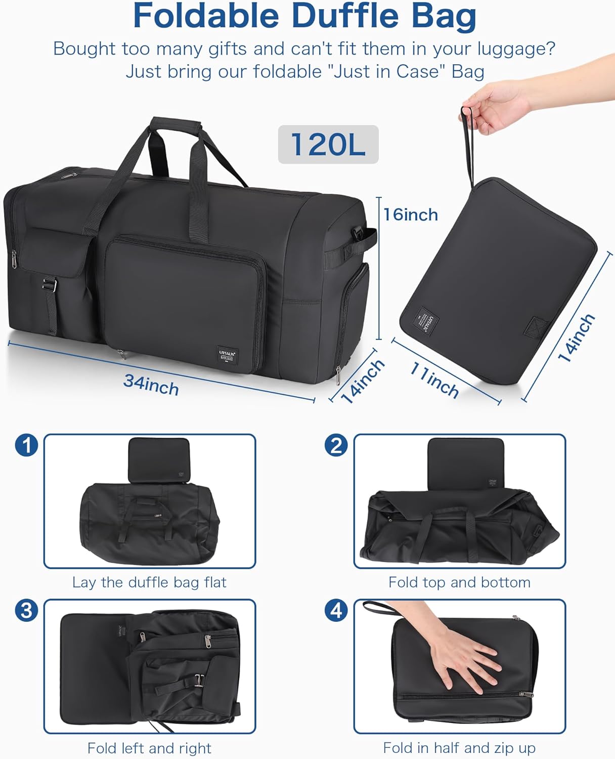 120L Travel Duffle Bag for Men and Women, Urtala 34” Large Duffle Bag for Traveling with Shoes Compartment, Foldable Travel Duffel Bags, Waterproof and Tear Resistant