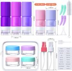 Designed for Travel Accessories: Our 18 pack reusable travel bottles set with 1 waterproof bag, 2 pcs silicone bottles (3 oz/90 ml), 2 pcs silicone bottles (2 oz/60 ml), 2 pcs spray bottles (1.05 oz/30 ml), 4 pcs cream jars (0.35 oz/10 ml), 1 pcs funnels, labels, brush and 2 pcs spatula! Different accessories for your different needs