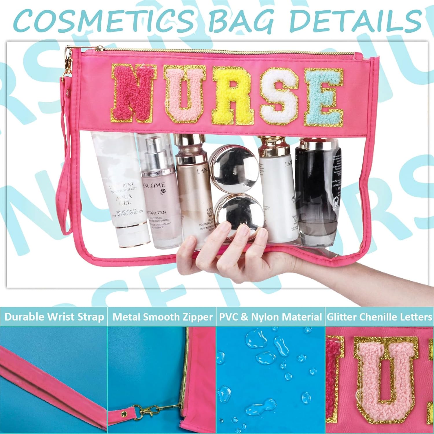 2 Pcs Nurse Gift Clear Makeup Bag Chenille Letter Patch Cosmetic Bag Zipper Pouch Nurse Survival Kit Travel Bag for Toiletries Waterproof Portable Travel Organizer Case for Women Girls
