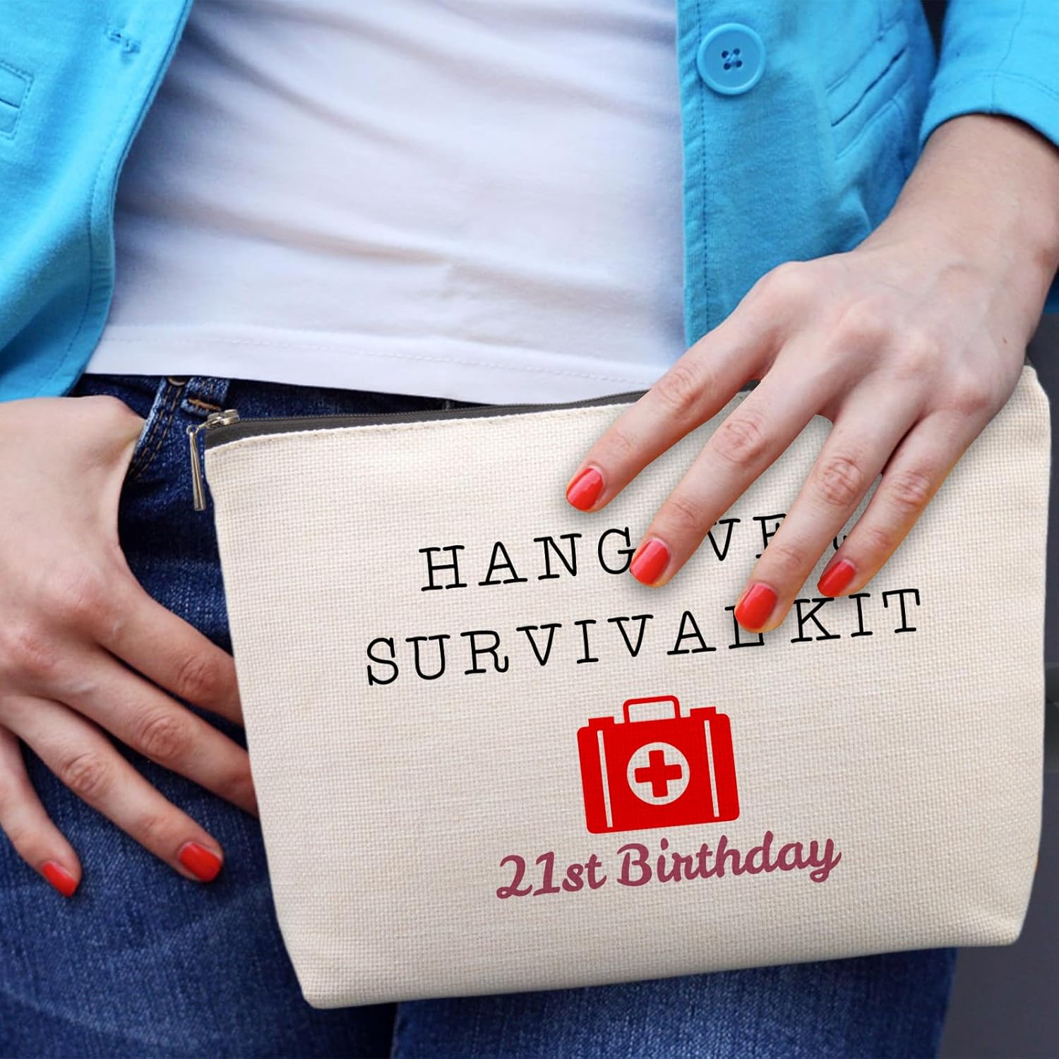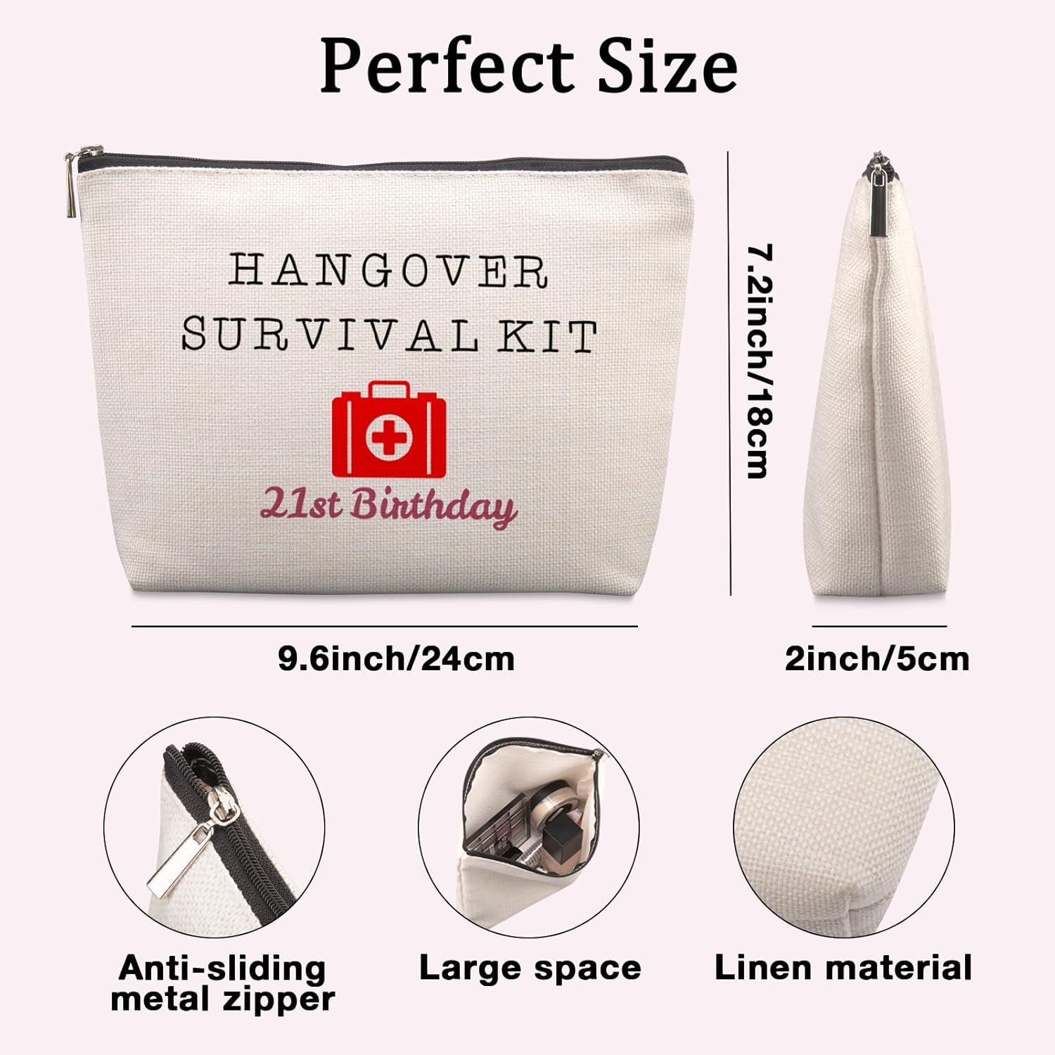 21st Birthday Gift: Hangover Survival Kit – Travel Cosmetic Bag, Funny 21 Year Old Gift for Her Sister Daughter Niece Granddaughter Friend