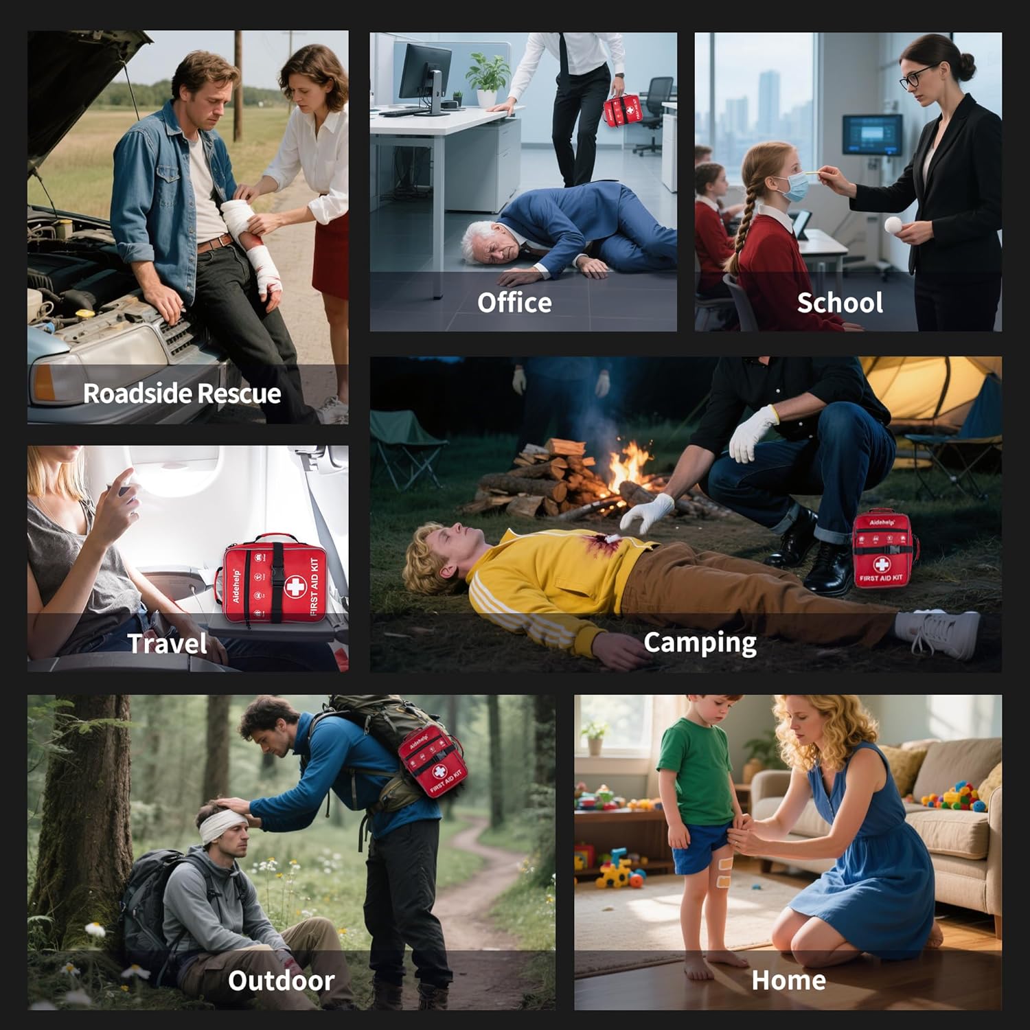 READY FOR EVERY EMERGENCY — Whether at home, on the go, or venturing into the wild, this first aid kit is your must-have safety partner. Keep it in your car, take it on trips, or bring it along for hiking, camping, and all outdoor adventures. Stay prepared to tackle emergencies with confidence, protecting yourself and your loved ones wherever you are.