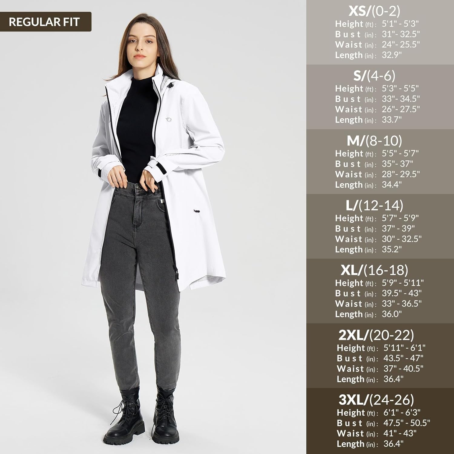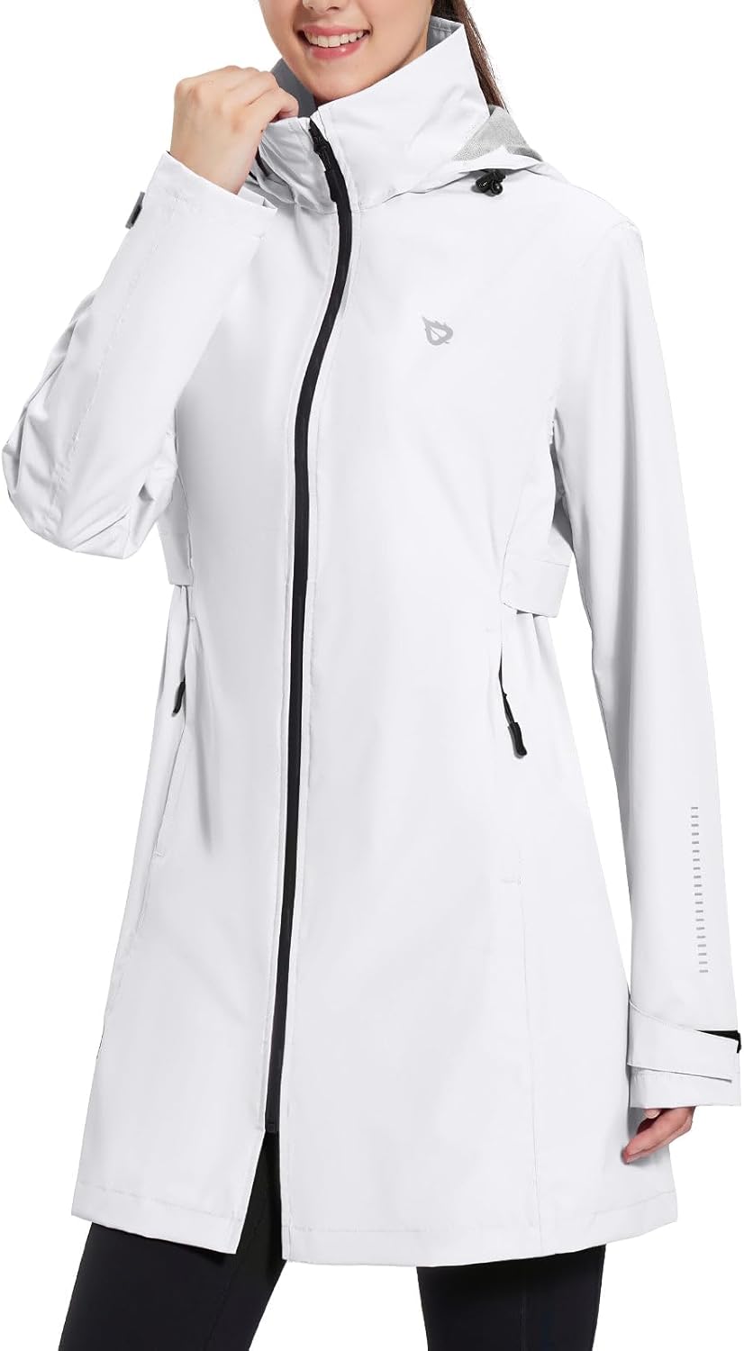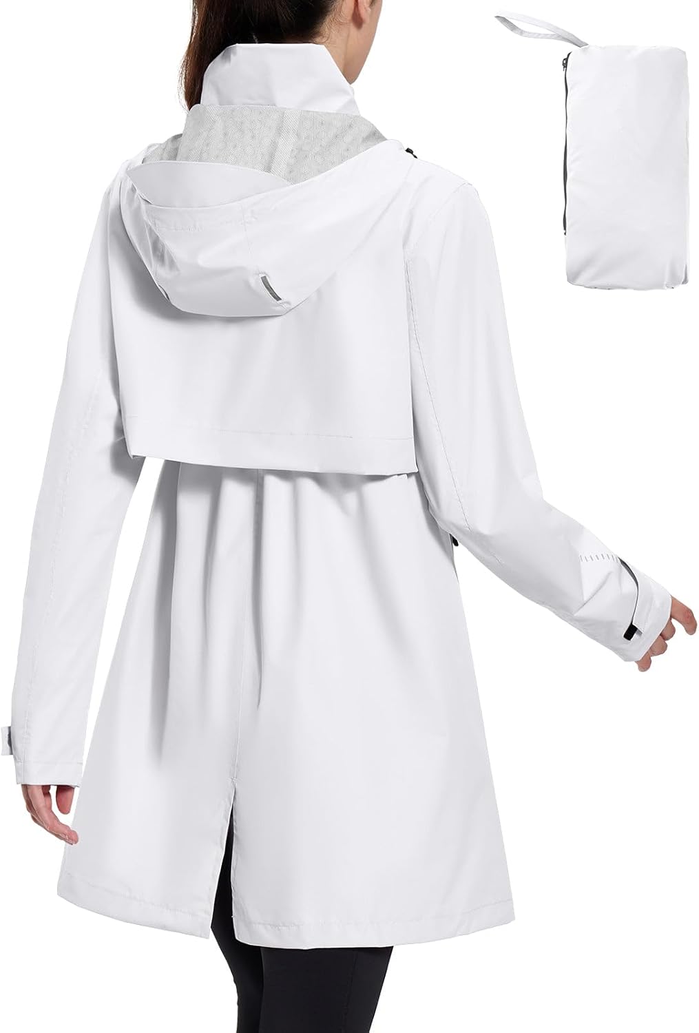 baleaf Women’s Long Rain Coat Packable Waterproof Windbreaker Lightweight Cycling Jacket with Hood