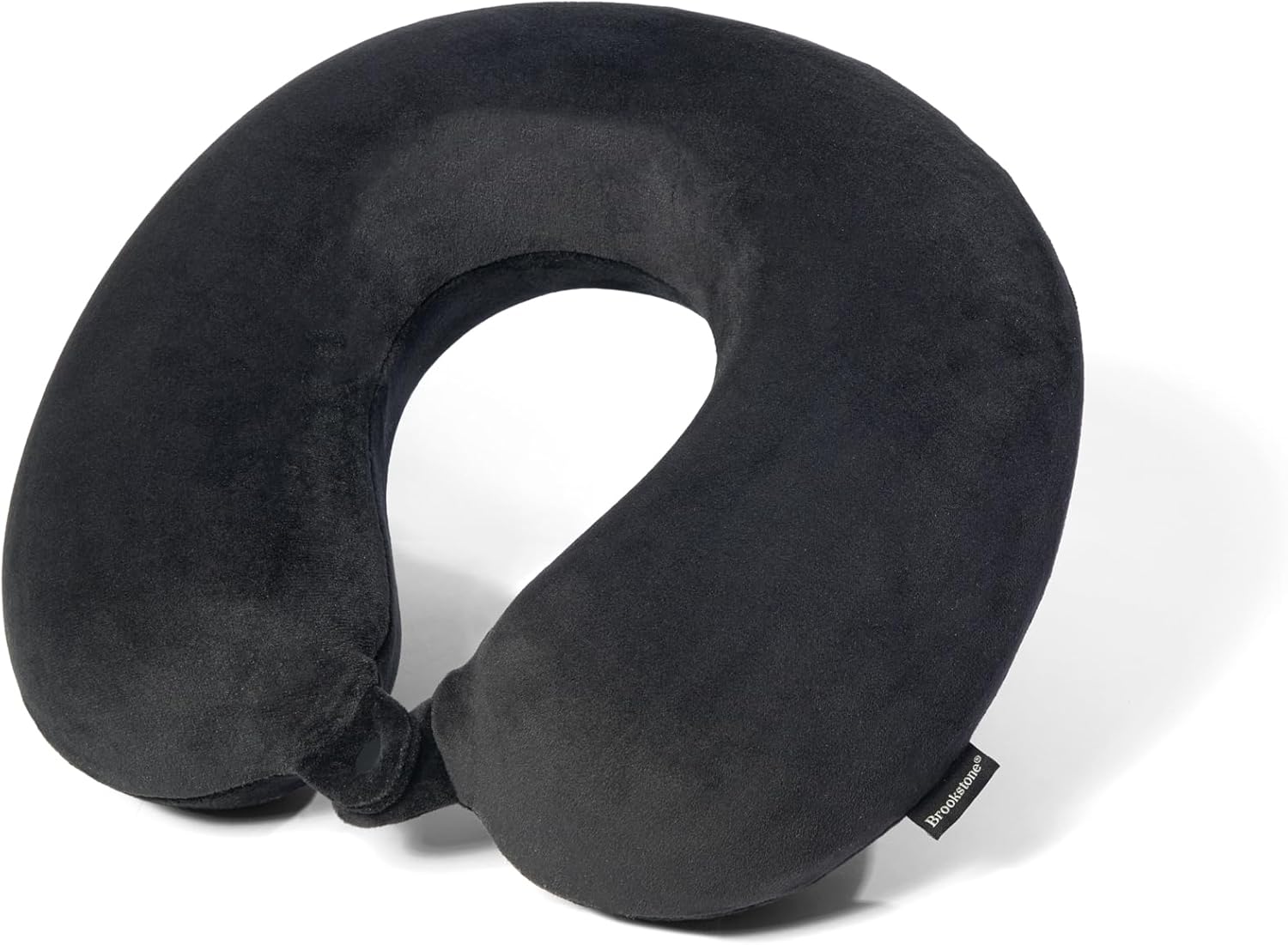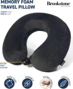 Brookstone Travel Neck Pillow – Lightweight Fleece Casing U-Shaped Stuffable Memory Foam Travel Pillow for Sleeping and Neck Support, Black