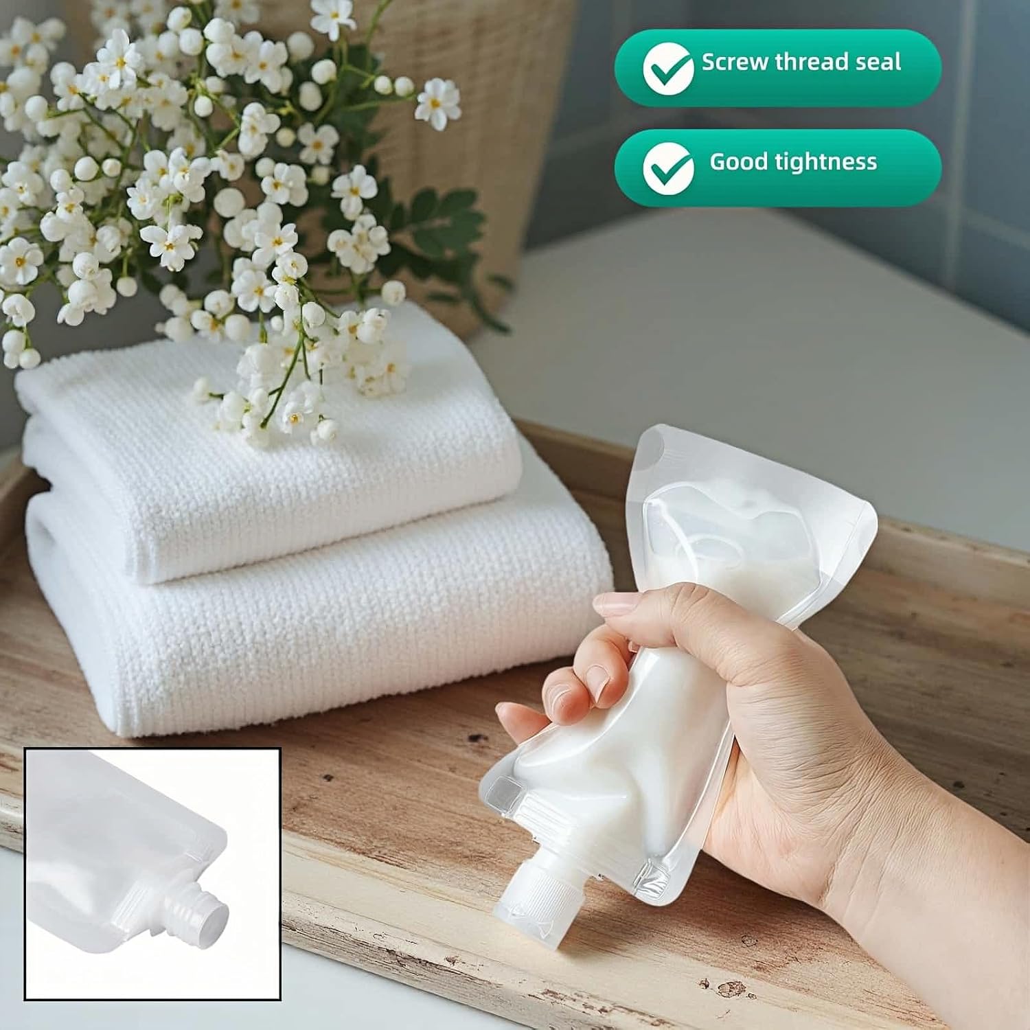 Wide-Mouth Easy Filling, Zero Waste “3x wider nozzle vs. regular bottles! Fill shampoo, sunscreen or thick creams in seconds without funnels. Drip-free design saves every drop of your premium products.”LEAK-PROOF DESIGN: Dual-sealed screw caps with flip-top lids ensure secure closure, preventing spills and leaks during travel or storage