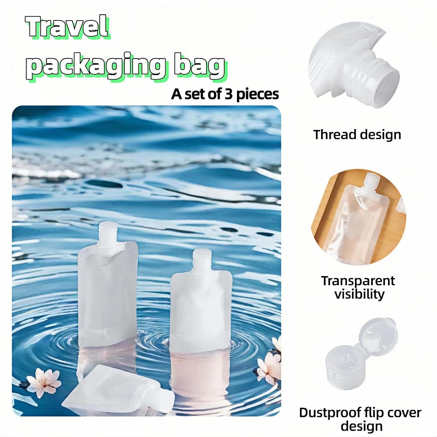Leak-Proof Design ” 30ML/50ML/100ML travel bottles. Dual-sealed screw caps & flip-top lids prevent messy spills in luggage. Never lose a drop of serum or lotion again!”CAPACITY OPTIONS: Set includes 3 travel bottles in different sizes – 30ml/1oz, 50ml/1.7oz, and 100ml/3.4oz, perfect for various toiletries