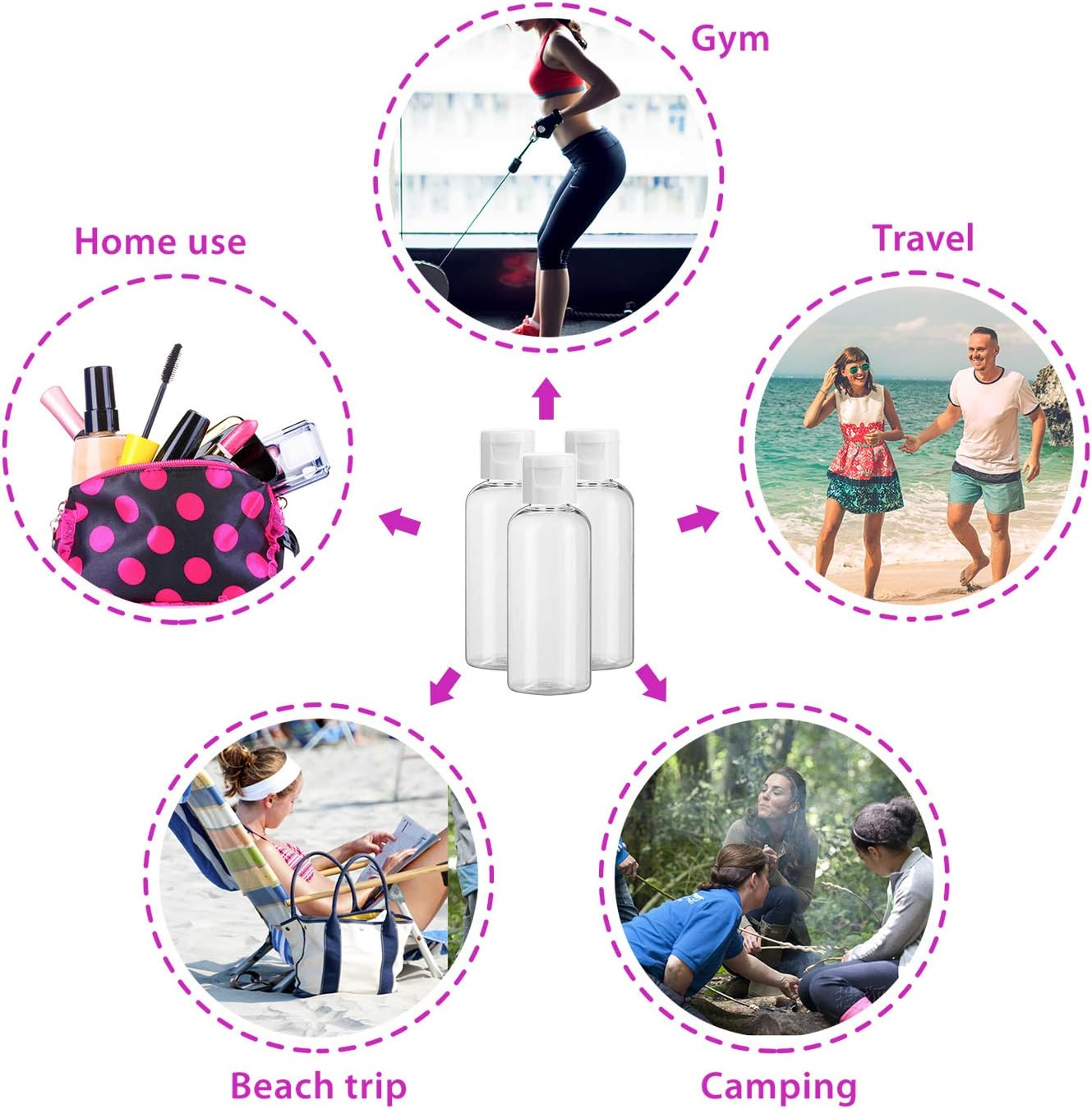 PREMIUM QUALITY WITH LEAK PROOF: The clear bottles are made of Eco-friendly PET material with features of free from harmful chemicals, lightweight, break-resistant and leak-free to use. Plus, this small bottle is soft enough to squeeze easily that means that even changes in air pressure or temperature won’t cause the bottle to pop open and leak