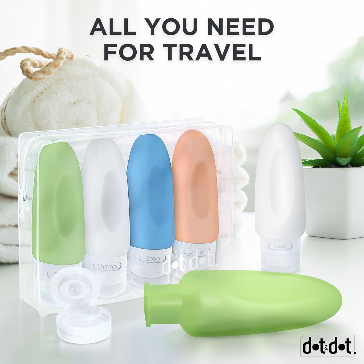 Dot&Dot Leak Proof Travel Bottles – TSA Approved 3oz Silicone Toiletries Travel Shampoo & Conditioner Containers with Labels