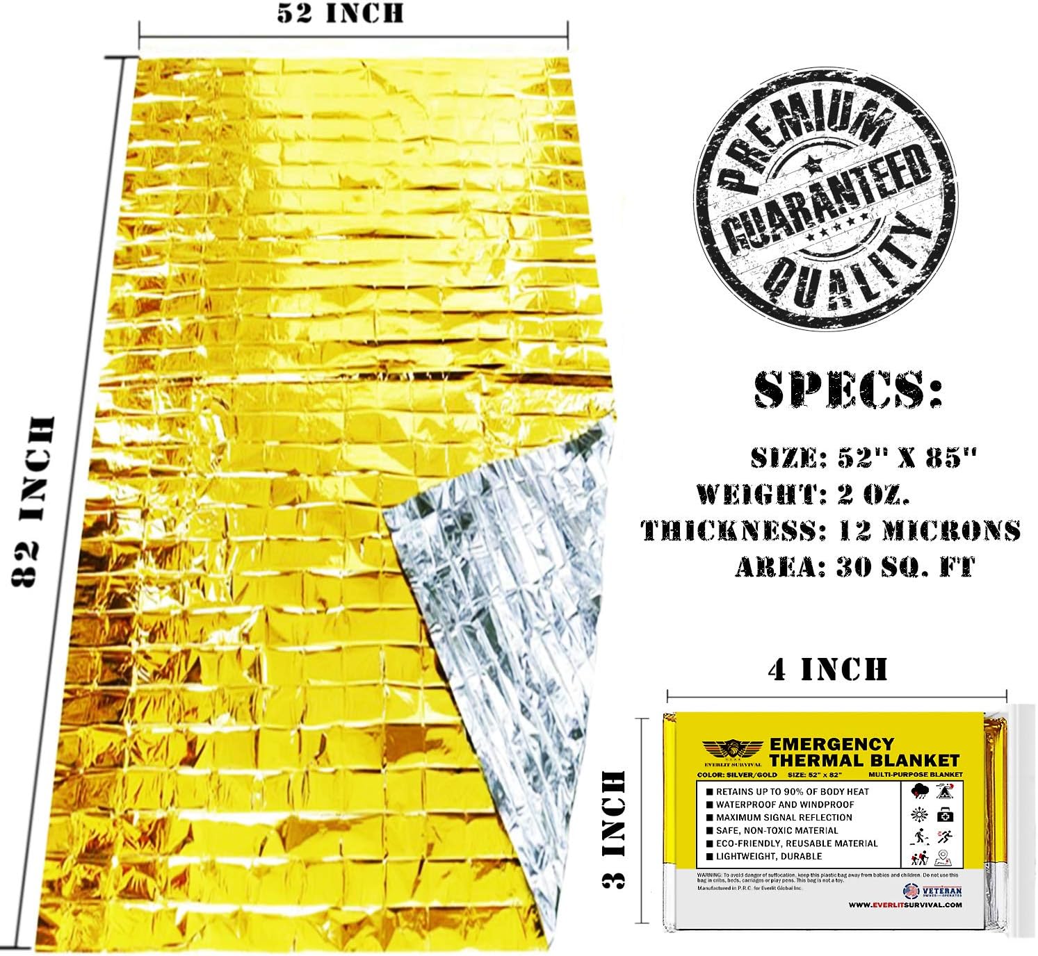 EVERLIT Emergency Mylar Thermal Blankets -Space Blanket Survival kit Camping Blanket Perfect for Outdoors, Hiking, Survival, Bug Out Bag ,Marathons or First Aid 1(Gold & Silver, 4 Pack)