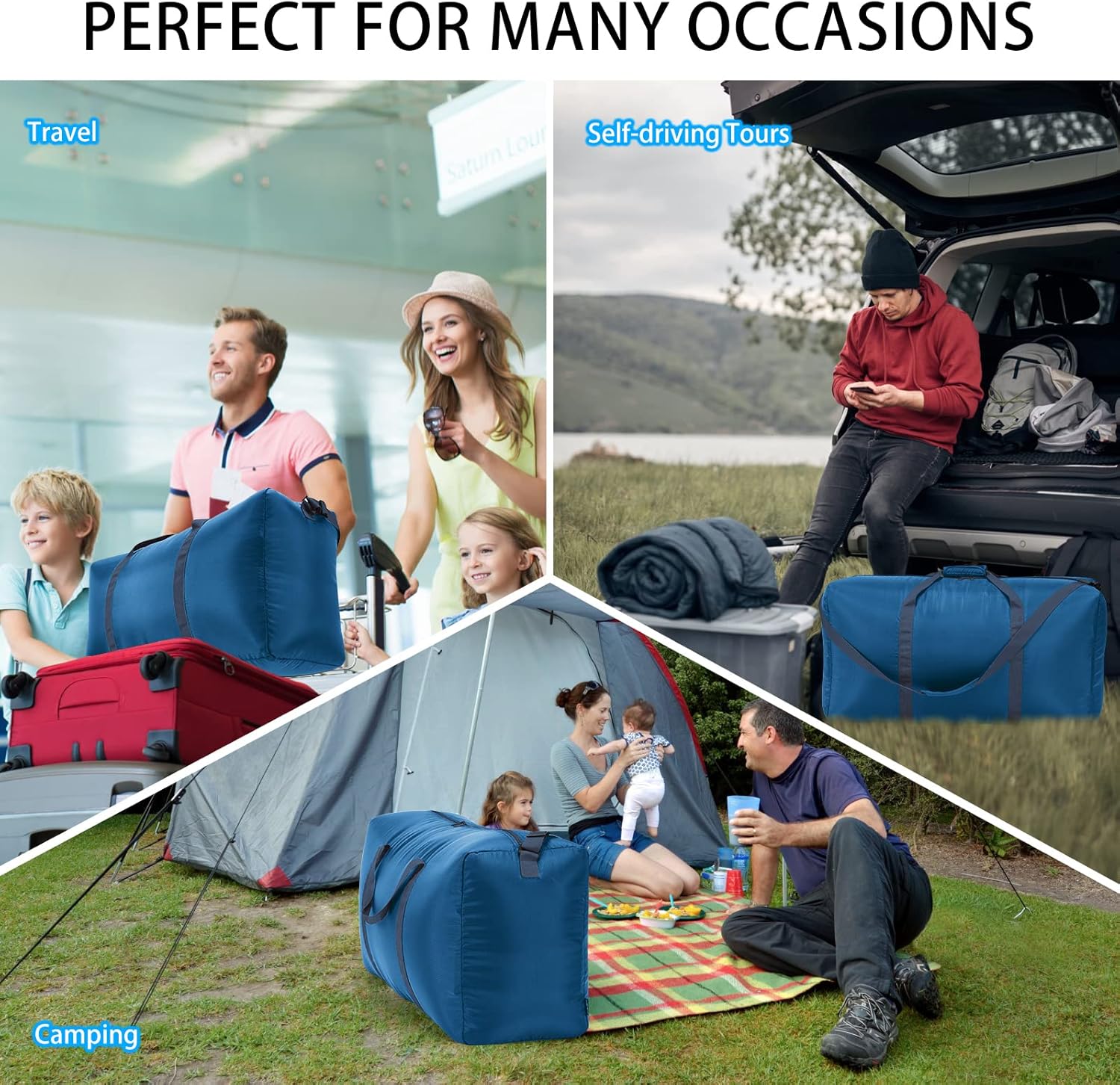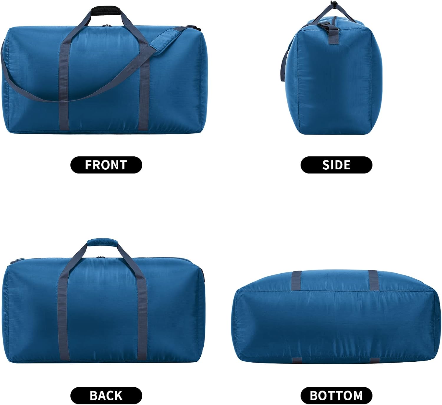 EASY TO CARRY LIGHTWEIGHT EXTRA LARGE DUFFEL BAG:The duffle bag has a long and comfortable padded carrying strap and handles for different options to carry. Can be folded to small size, easy to carry as a “JUST IN CASE” bag for your trip.