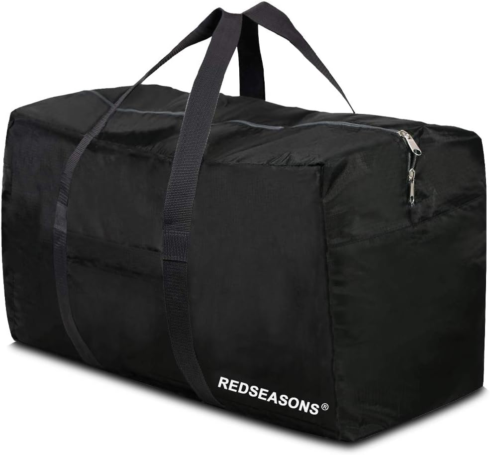 REDSEASONS Duffle bag it has a hugely outsized capacity can hold a multitude of items,including all kinds of clothes,bedding such a sleeping bags,ground mats, workout gear, groceries, and much more.More importantly, it can even be used as a dirty suitcase at home. Or used as a large sports and gym duffel bag.Its classic and simple design makes your journey more convenient and fast, suitable for everyone.