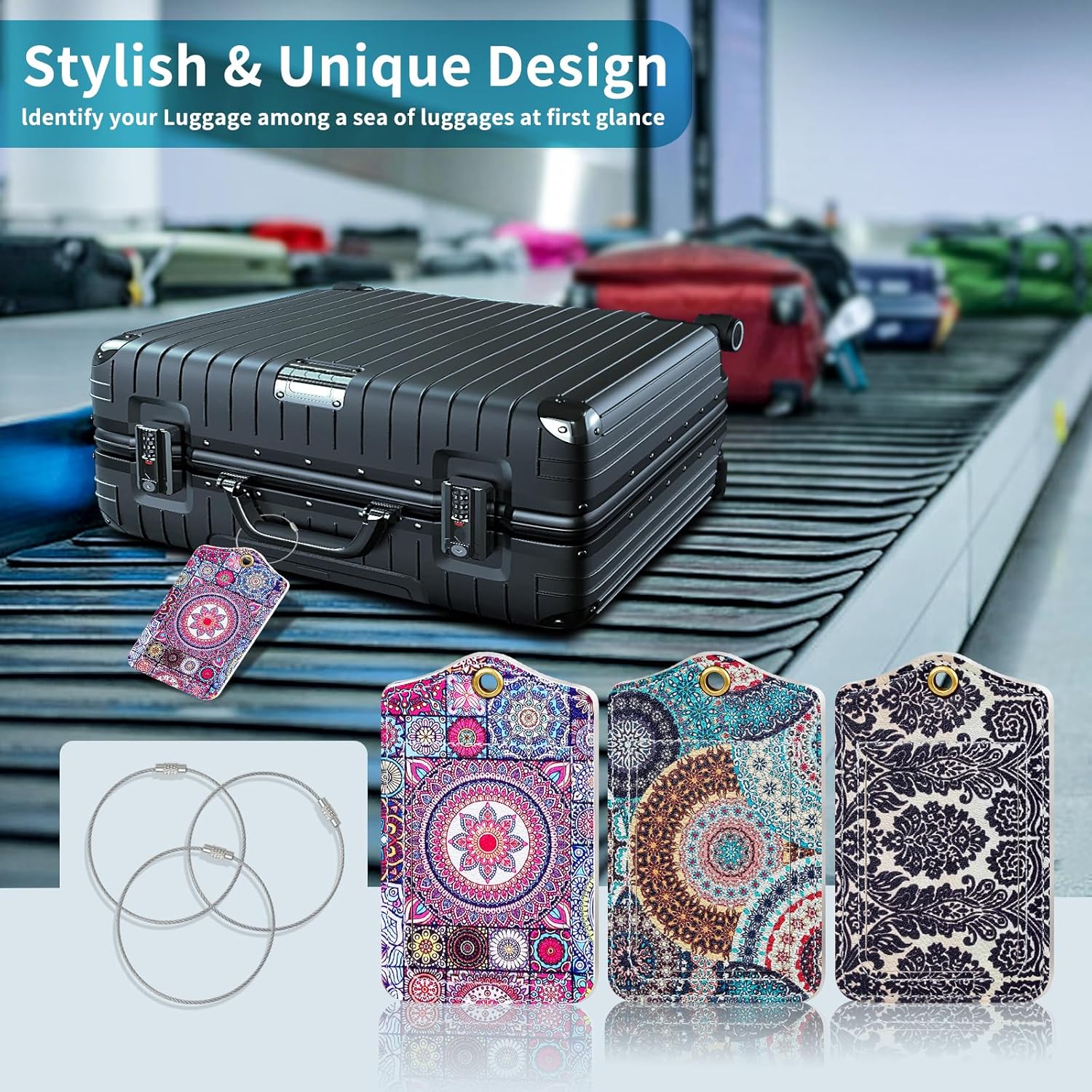 Gift Ideas: Travel tags for luggage with unique design, stylish and visible,Perfect name tags for travel bag, suitcase, school bag, sports gear, pet carriers or anything else that need to be labelled.Great gift for women, men, friends, family members, birthday gift, mother’s day gift, wedding, Valentine’s Day, Christmas and Thanksgiving.