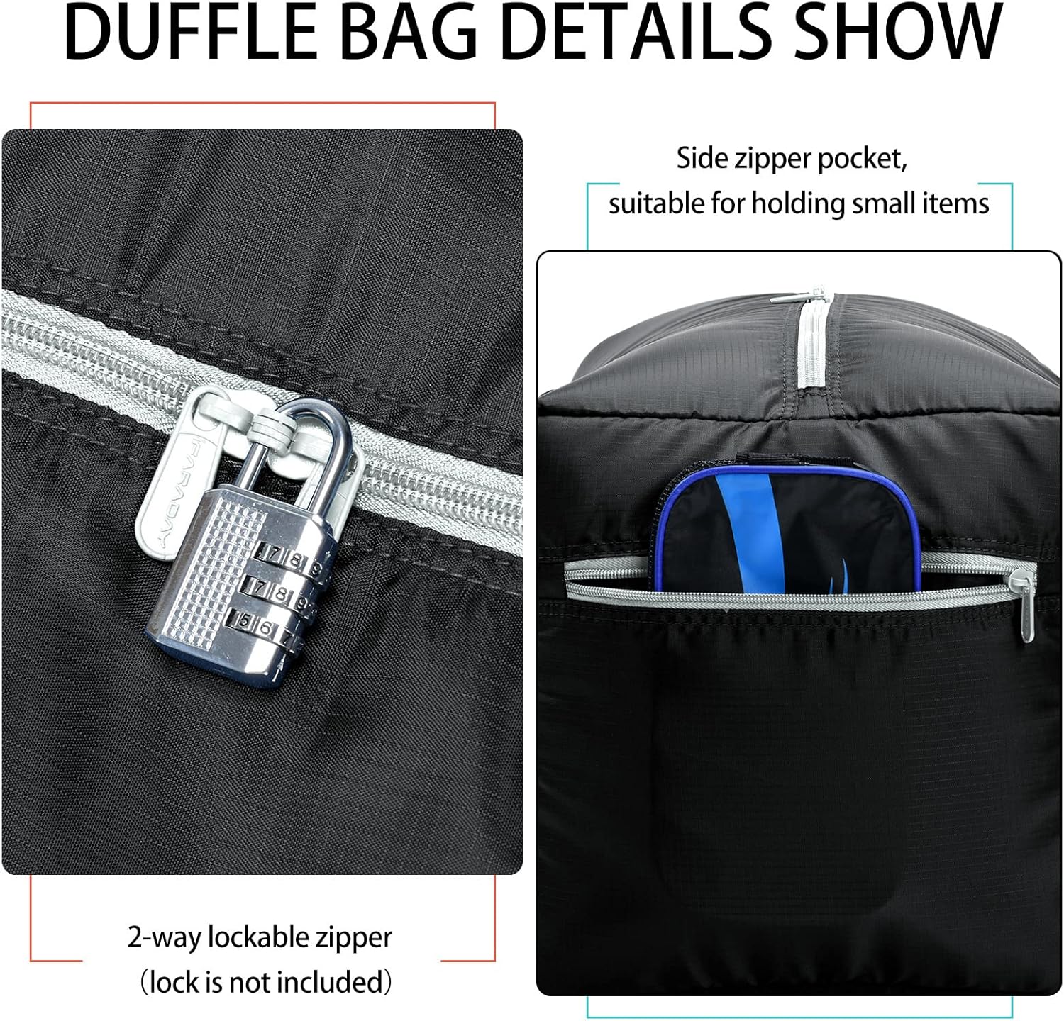 LIGHTWEIGHT & LARGE CAPACITY: Up to 75L capcacity with one side zipper pocket, total weight of this duffel bag is only about 0.52lbs.