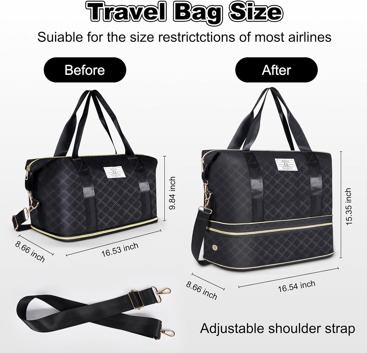 【Expandable & Spacious Design】Experience game-changing versatility with the exclusive expandable zipper, boosting this duffle bag’s capacity from 23L to a massive 32L. Perfect for business trips, bringing back souvenirs, or unexpected purchases, it’s your ultimate weekender bag that adapts on the go, helping you avoid extra baggage fees.
