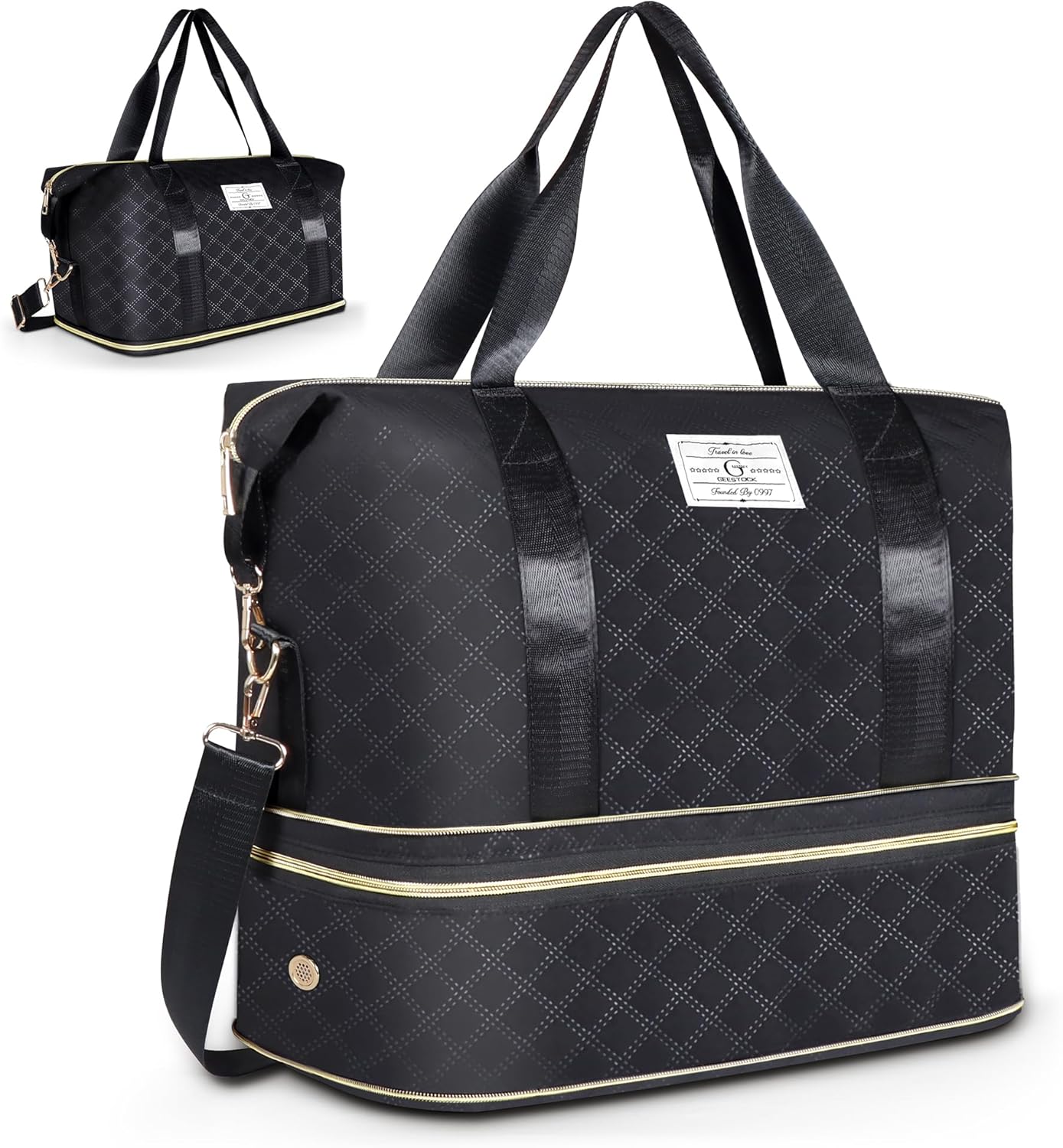 Geestock Travel Duffle Bag for Women with Shoe Compartment Expandable 23L to 32L, Weekender Overnight Bag Carry On Personal Item Gym Duffel Bags for Travel, Business, Sports, Hospital Bags (Black)
