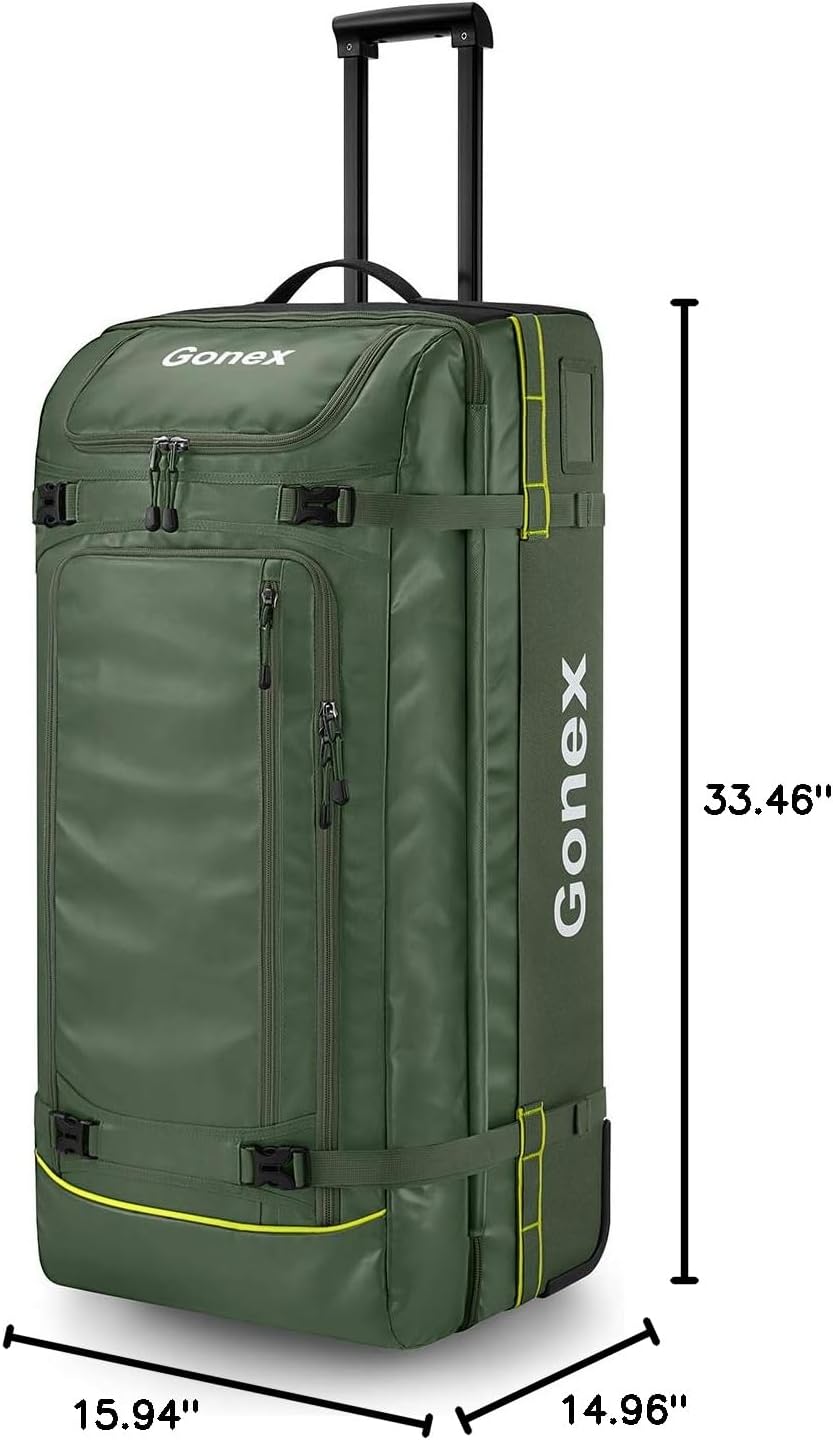 Gonex Rolling Duffle Bag with Wheels, 100L Water Repellent Large Wheeled Travel Duffel Luggage with Rollers 33 inch, Olive Green