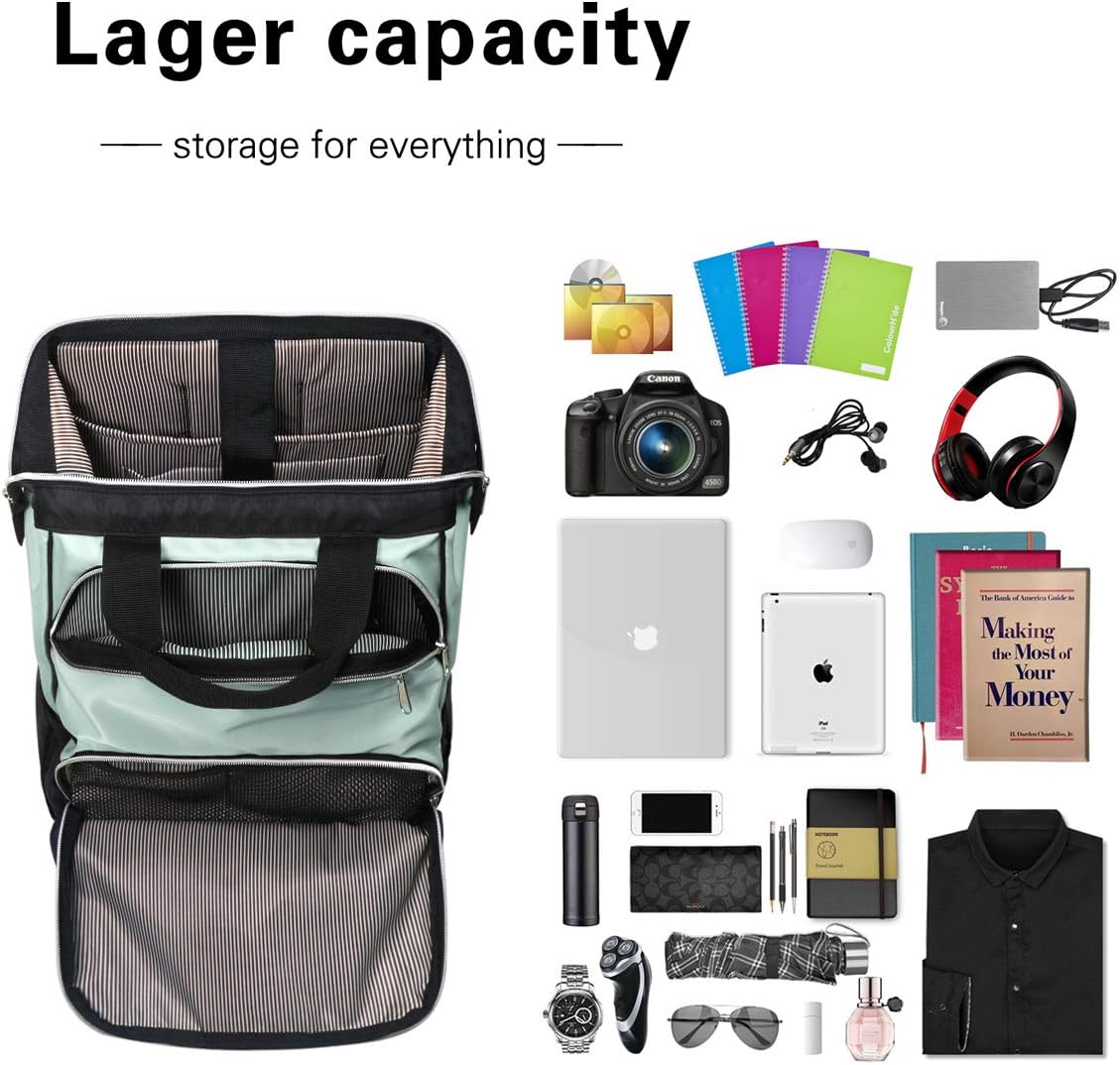 【Doctor Bag Style Large Opening】This bag has many quick access exterior pockets and simple doctor bag style large opening for easily seeing what’s inside and makes it easy to pack and unpack, also it has a headphone/ cable pass-through which offering an easy way for you to charge smart phone or listen to music on-the-go.