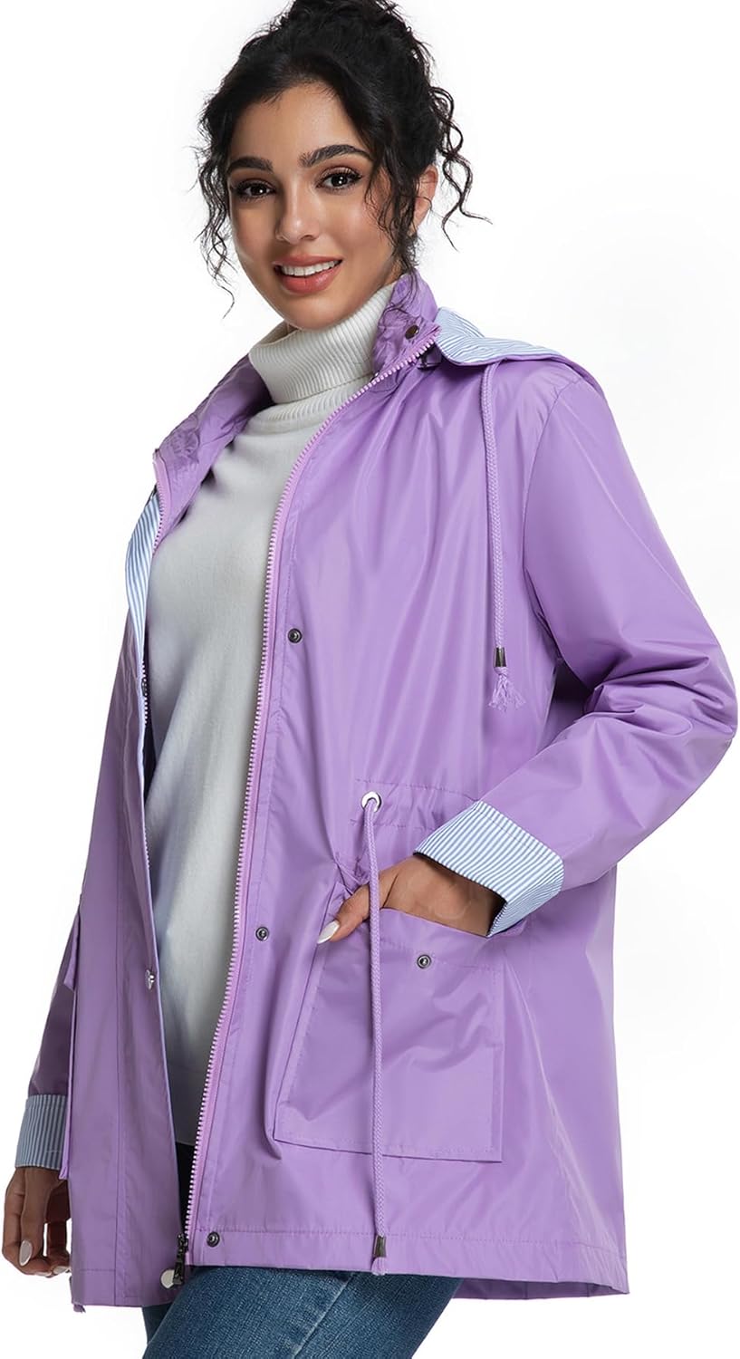 jiehan Women’s Rain Jacket Waterproof Lightweight Packable Raincoat with Hood for Golf Hiking Travel Windbreaker