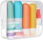Travel Bottles for toiletries:From small containers for essentials like shampoo and conditioner to larger ones for body wash or lotion, there’s a size for every need. Plus, the clear design makes it easy to identify the contents without having to open each bottle.