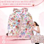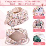Large Quilted Travel Duffle Bag for Women Floral Portable Gym Weekender Bag with Zipper Pockets Workout Grocery Pouch Duffle Gift Pouch for Christmas Work(Pink Floral)