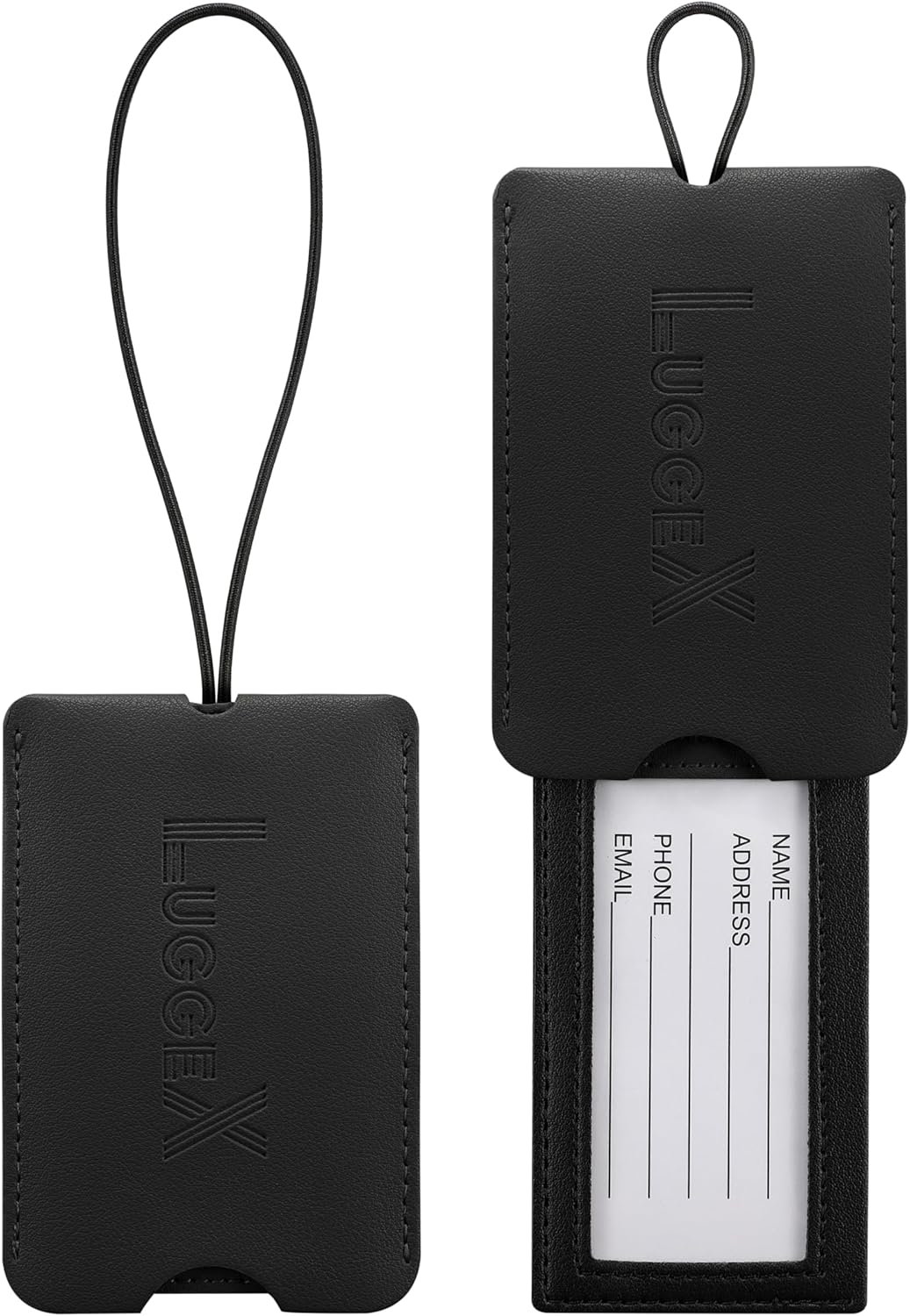 LUGGEX Luggage Tags for Suitcases, 2Pcs Carry on Bag Tags, Privacy Protection Checked Luggage Travel Backpack Essentials, Black