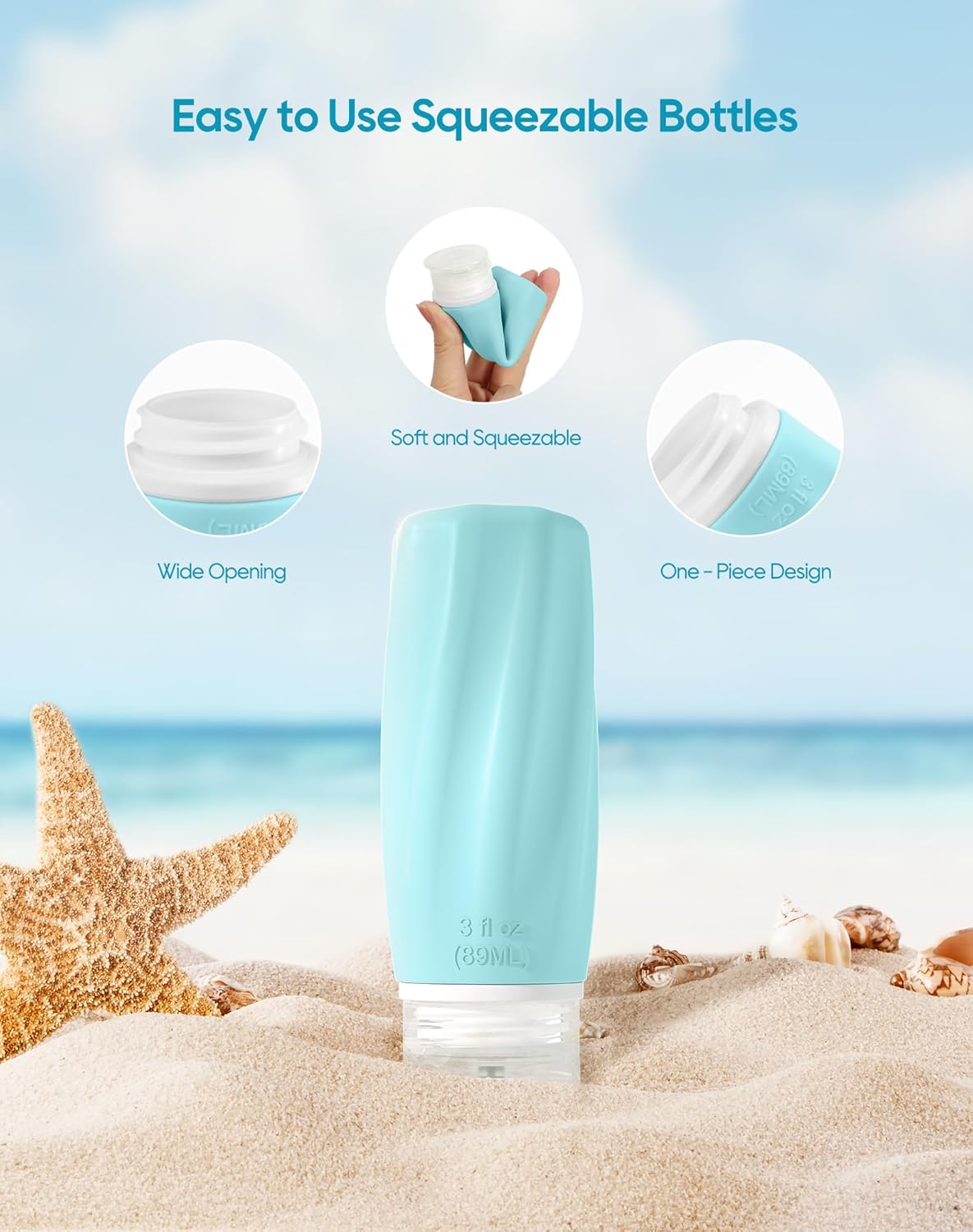 【Safe Silicone & Squeezable Material】 Our silicone travel bottles are made of food-grade silicone that making it safe for other liquids like sauce, salad dressing or even baby food. Moreover, these travel shampoo bottles are soft to use, flexible to carry around. It can make you squeeze out contents easily.