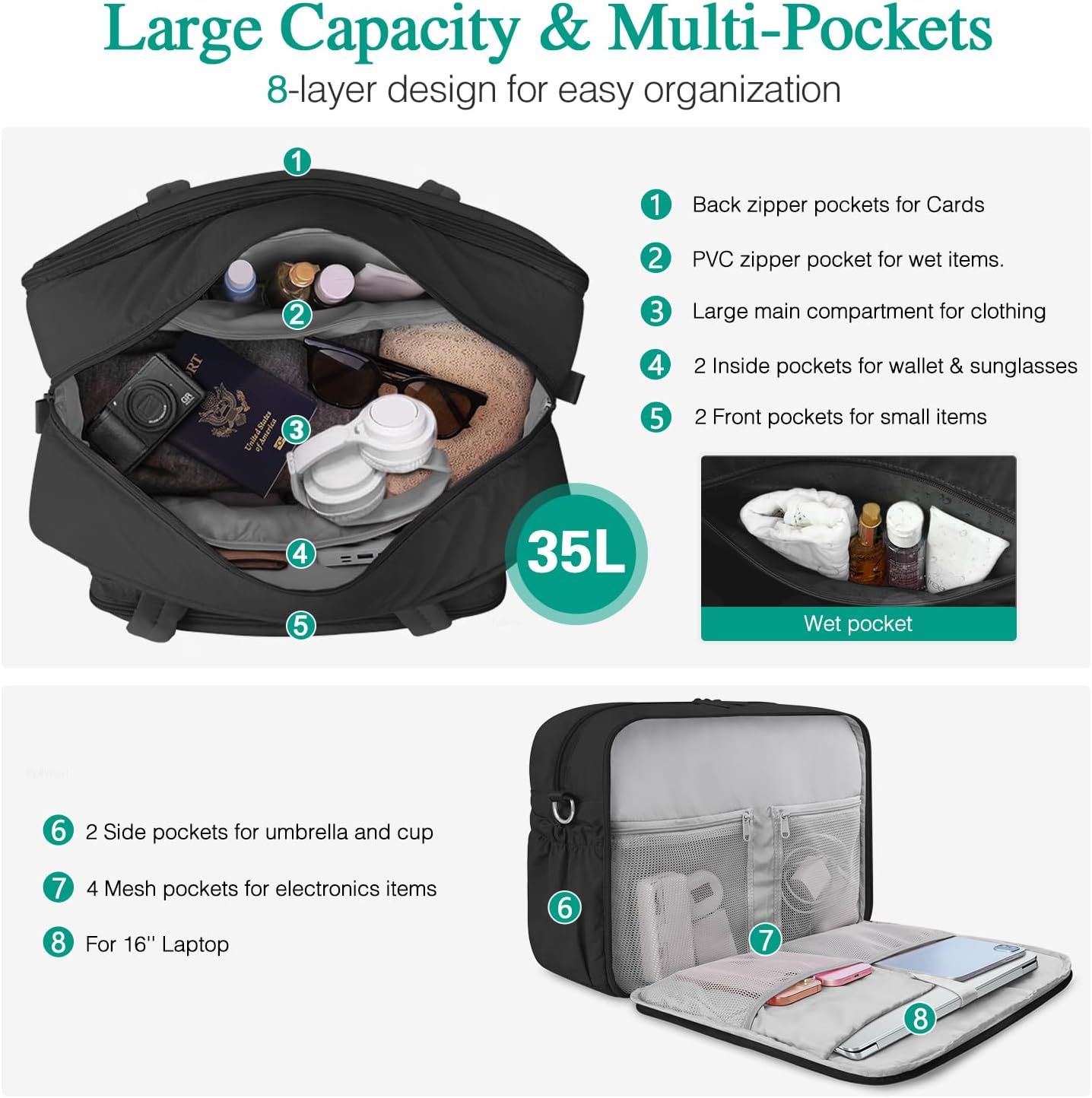 Multi-Pocket 35L Duffel Bag – Water-Resistant Gym & Travel Carry-On for Women