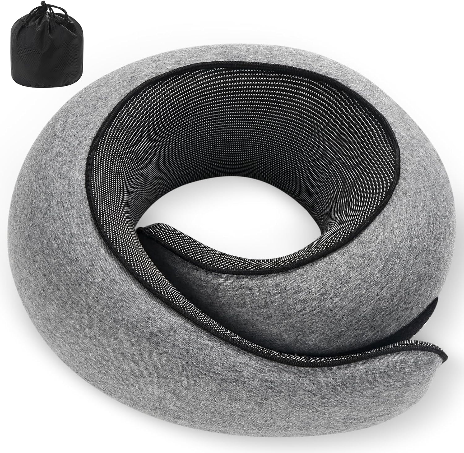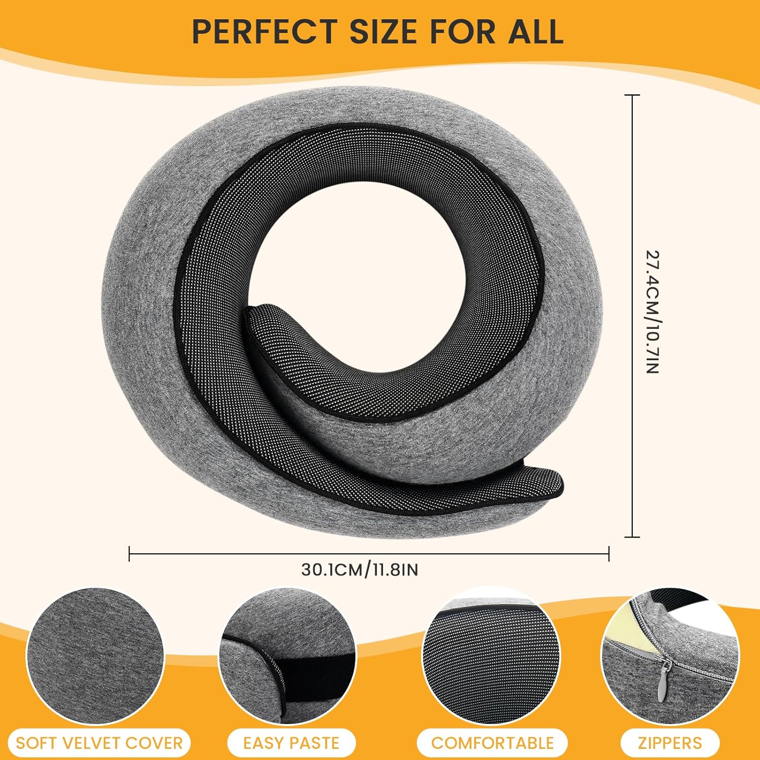 Neck Pillow, Travel Pillow uses Memory Foam to Support Neck Comfort, Ideal Companion for Airplane and car Travel, Compact, Convenient, and Versatile Airplane Sleep Pillow(Gray)