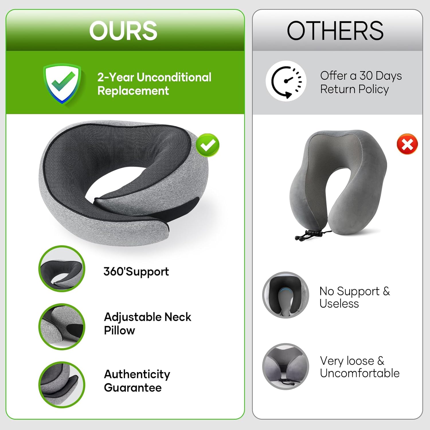 NOCRLG Travel Pillow, Travel Neck Pillow for Airplanes Car, 100% Pure Memory Foam Travel Pillow, Sleeping Essentials for Long Flight 360° Head Support Degree Comfort and Breathability (Grey)