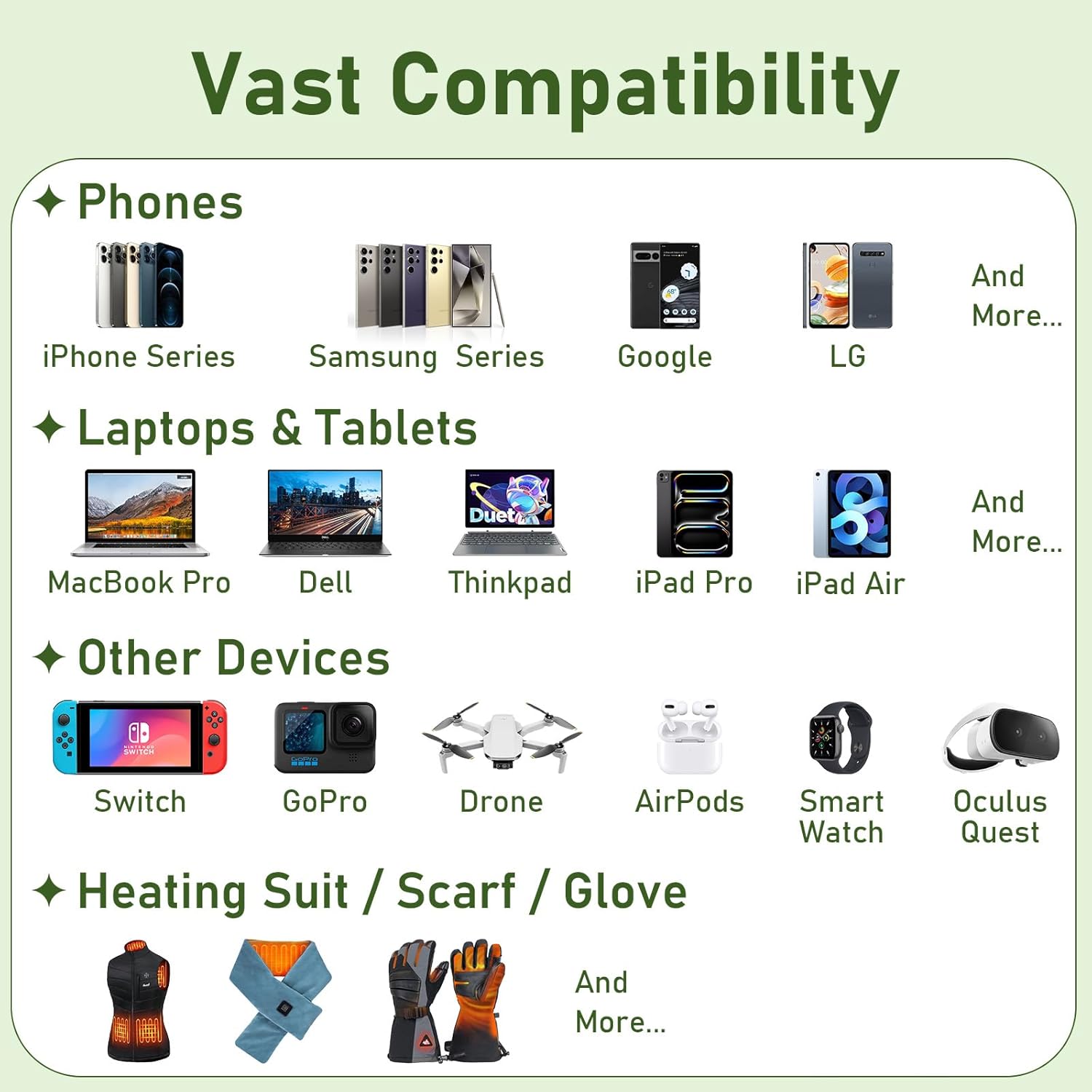 NOTICE: 20000mAh Fast Charging rechargeable battery pack for USB heated clothing is designed for heated hoodies,that the output must be USB(NOT DC output). Please note that before ordering.GrnOas.E portable charger power bank work with 7.4V or 12V USB input heated vest, heated jacket.
