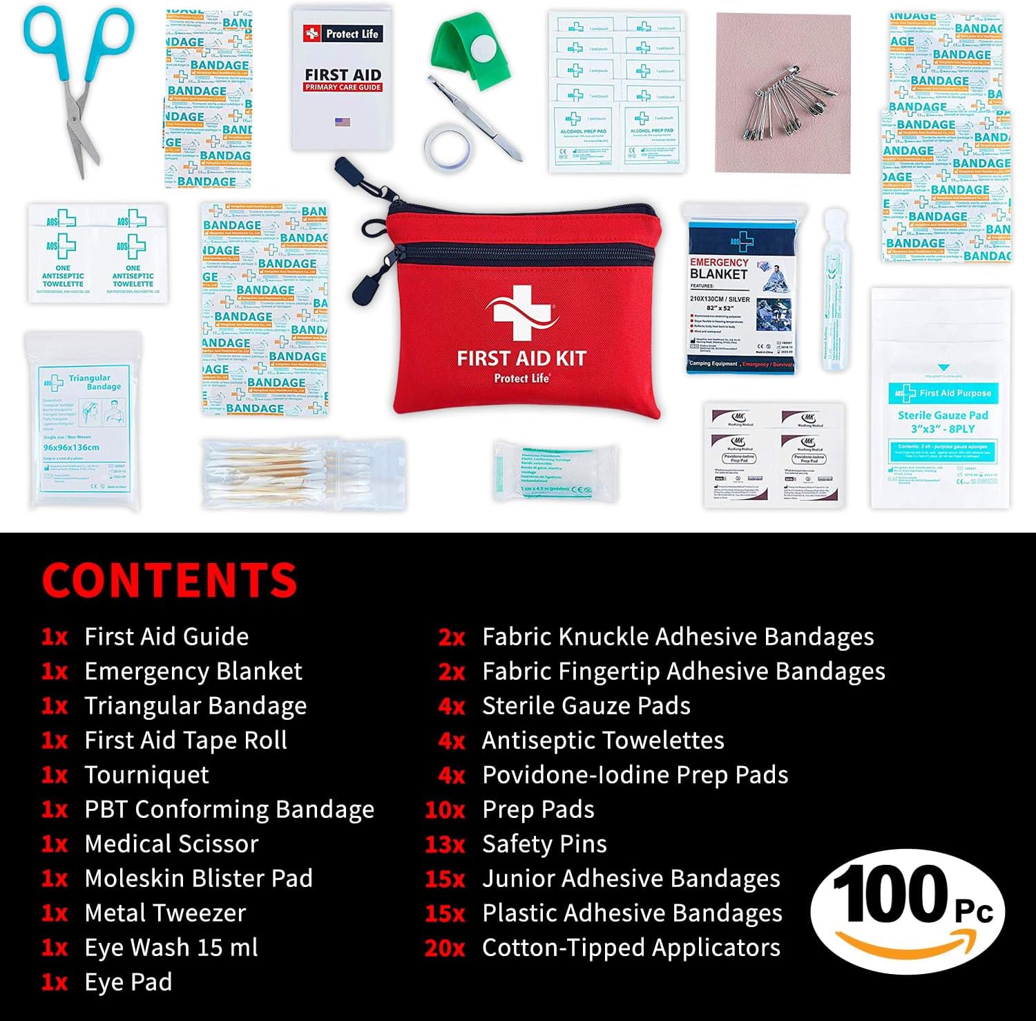 Protect Life Survival First Aid Kit for Home/Business, Camping Survival Kits | Mini Travel First Aid Kit | Camping Equipment | Small Kits for Car | Outdoor Emergency Survivals Pack – 100pcs