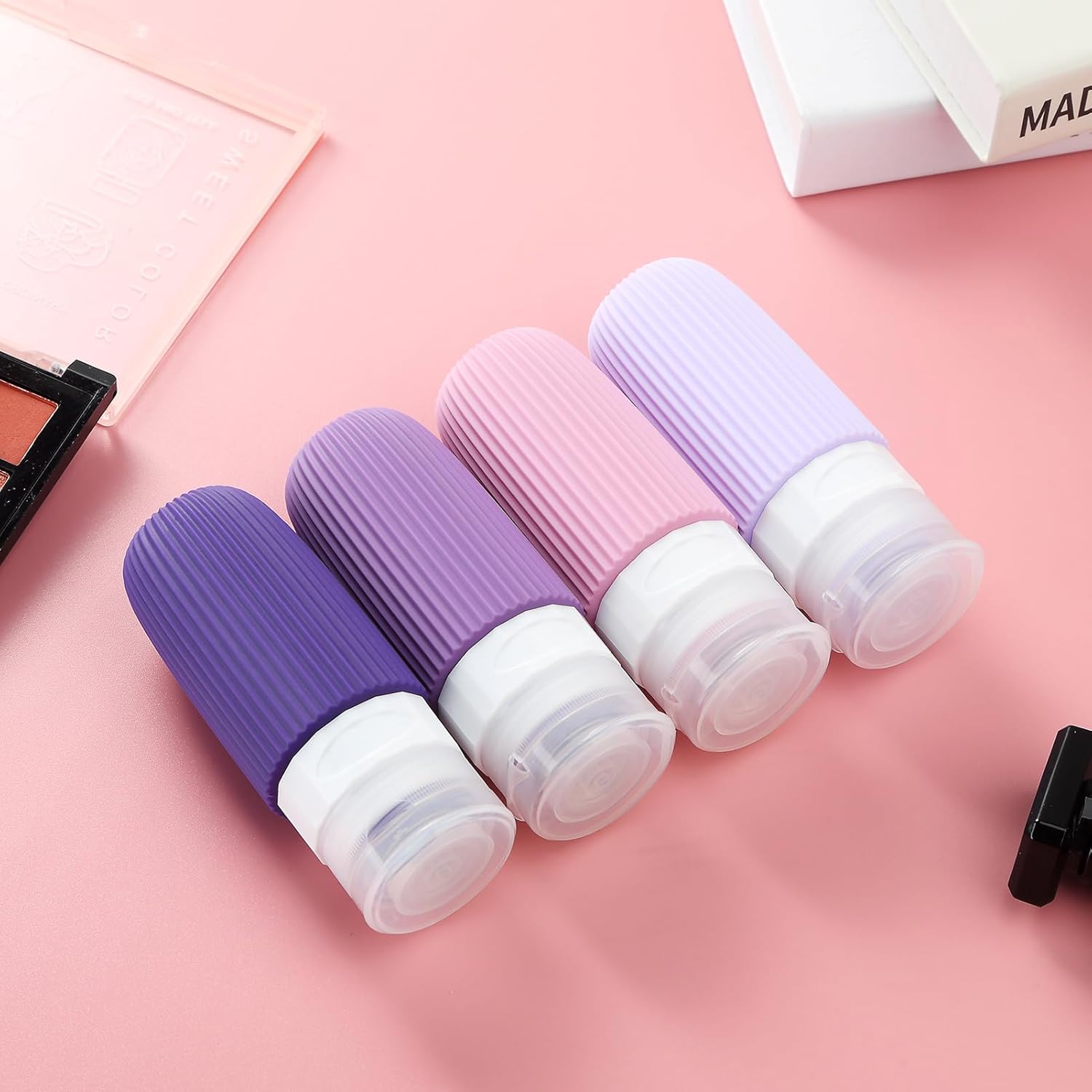 TSA carry on approval: 4 pack 2 oz silicone travel bottles, very suitable for shampoo, conditioner, shower gel, lotion, hand sanitizer and shower gel. It is equipped with a high-quality zipper transparent wash bag, which saves space and allows you to travel long distance freely like a professional.