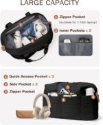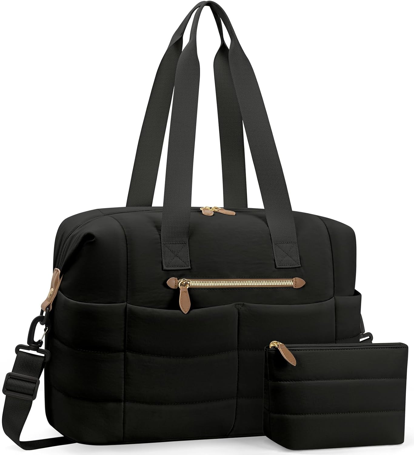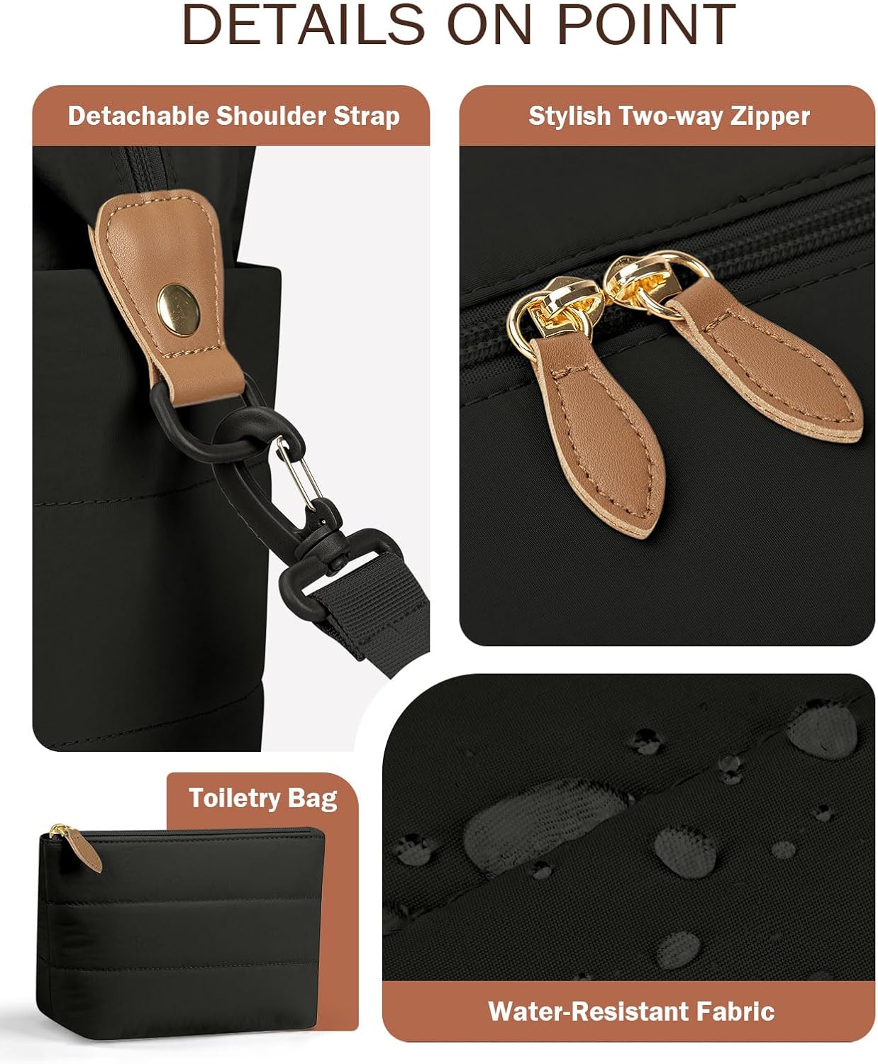 Travel Duffel Bag, Puffer Gym Bag for Women Lightweight Weekender Overnight Bags, Carry On Tote For Spirit Airlines Personal Item Bags with Toiletry Pouch(Black, M)