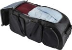 Travelers Club expedition 30″ Rolling duffel is constructed from 600D. Polyester. It has large U-shape opening and extra large zippered accessory pockets.