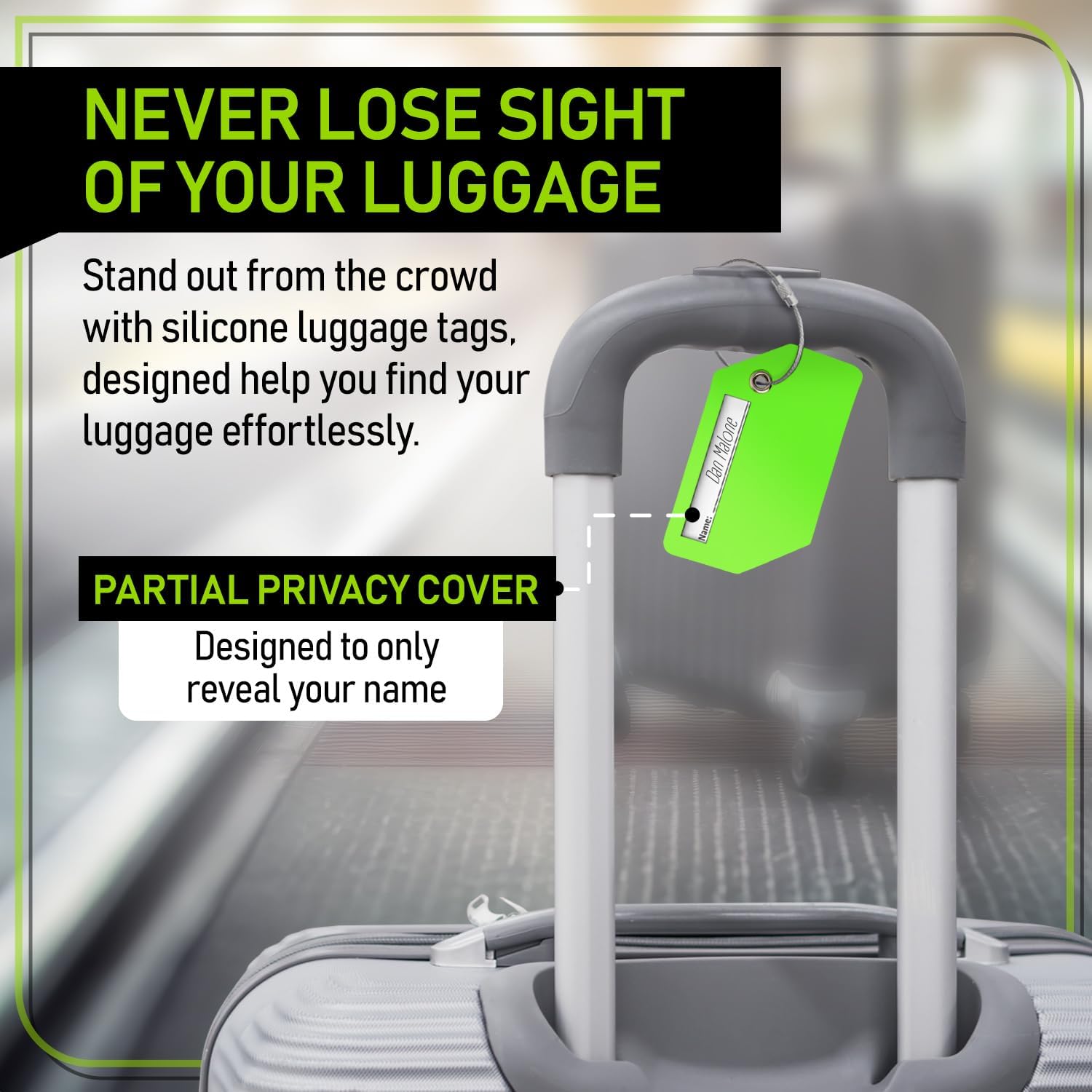 Built to handle the road ahead: Made of premium soft silicone, a reinforced all-metal grommet and a stainless steel luggage loop, our luggage tags are both flexible and made to last.