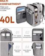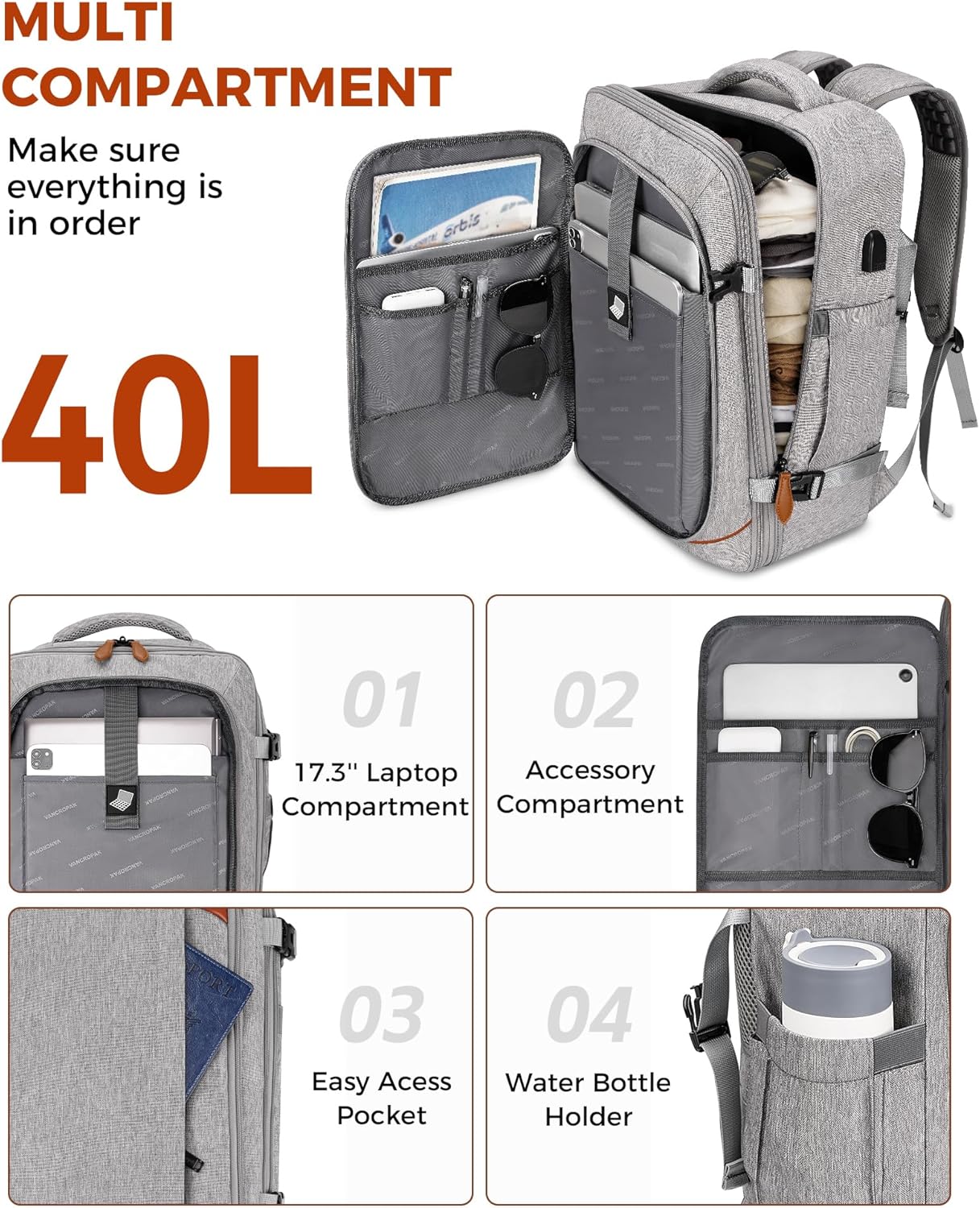 Vancropak Carry on Backpack, Flight Approved Travel Backpack with 3 Packing Cubes, Expandable Large 40L Travel Bag fits 17.3″ Laptop, Anti Theft Luggage Suitcase Weekend Daypack for Women Men, Grey