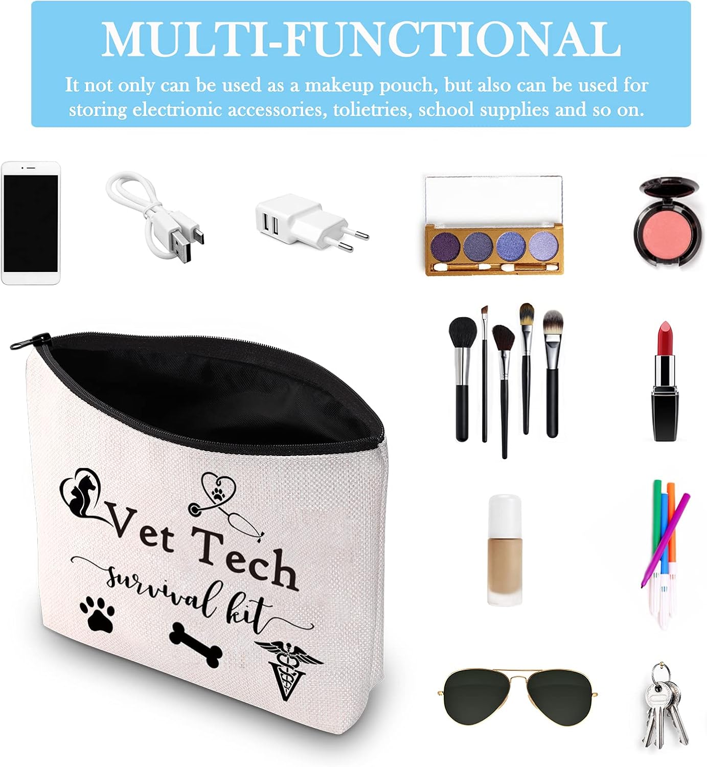 Veterinarian Tech Gift Tech Gift Vet Tech Survival Kit Travel Makeup Cosmetic Bags for Graduation (Vet Tech Bag)