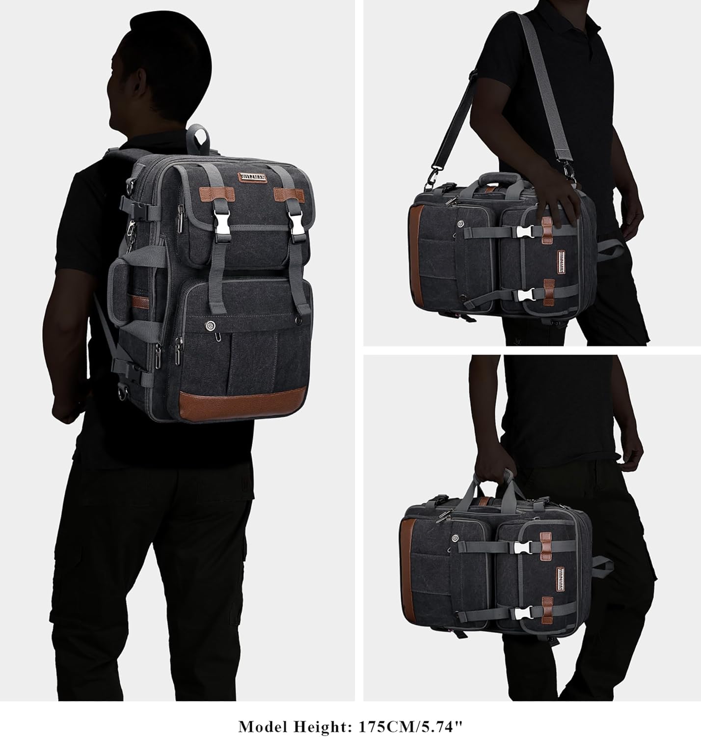 WITZMAN Canvas Travel Backpack for Men Large Laptop Backpack Fit 17 inch Carry-on Airline Approved Convertible Shoulder Rucksack(A6617-3 Black)