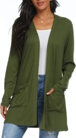 Womens Casual Lightweight with Pocketes Long Sleeve Open Front Cardigan