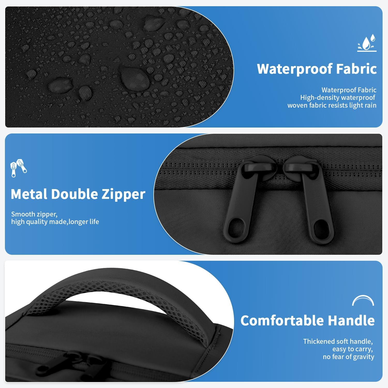 Large Capacity & Multiple Pockets: The travel backpack designed with multi functional pocket for 3-5 days travel necessities. It has main pocket, wet clothes pocket, interior pocket, side pockets, laptop compartment, organized pocket, front pockets making your items organized and easy to find. Separate laptop compartment of college laptop bookbag holds 15.6 inch laptop and 12.9 ipad. The built-in elastic bands of main pocket keep your clothes from falling